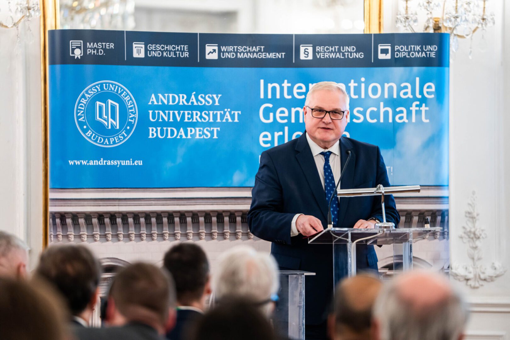Unter dem Titel “Perspectives on the war in Ukraine and the future of the European security order“ fand am 21. März 2024 ein Vortrag von Botschafter Dr. Thomas Greminger, Leiter des Genfer Zentrums für Sicherheitspolitik (GCSP), an der Andrássy Universität Budapest statt.