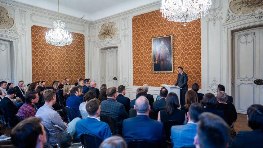 After the lecture and the subsequent discussion with questions from the audience, the exchange continued in the ambience of the Andrassy Hall with a buffet and good wine.